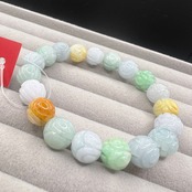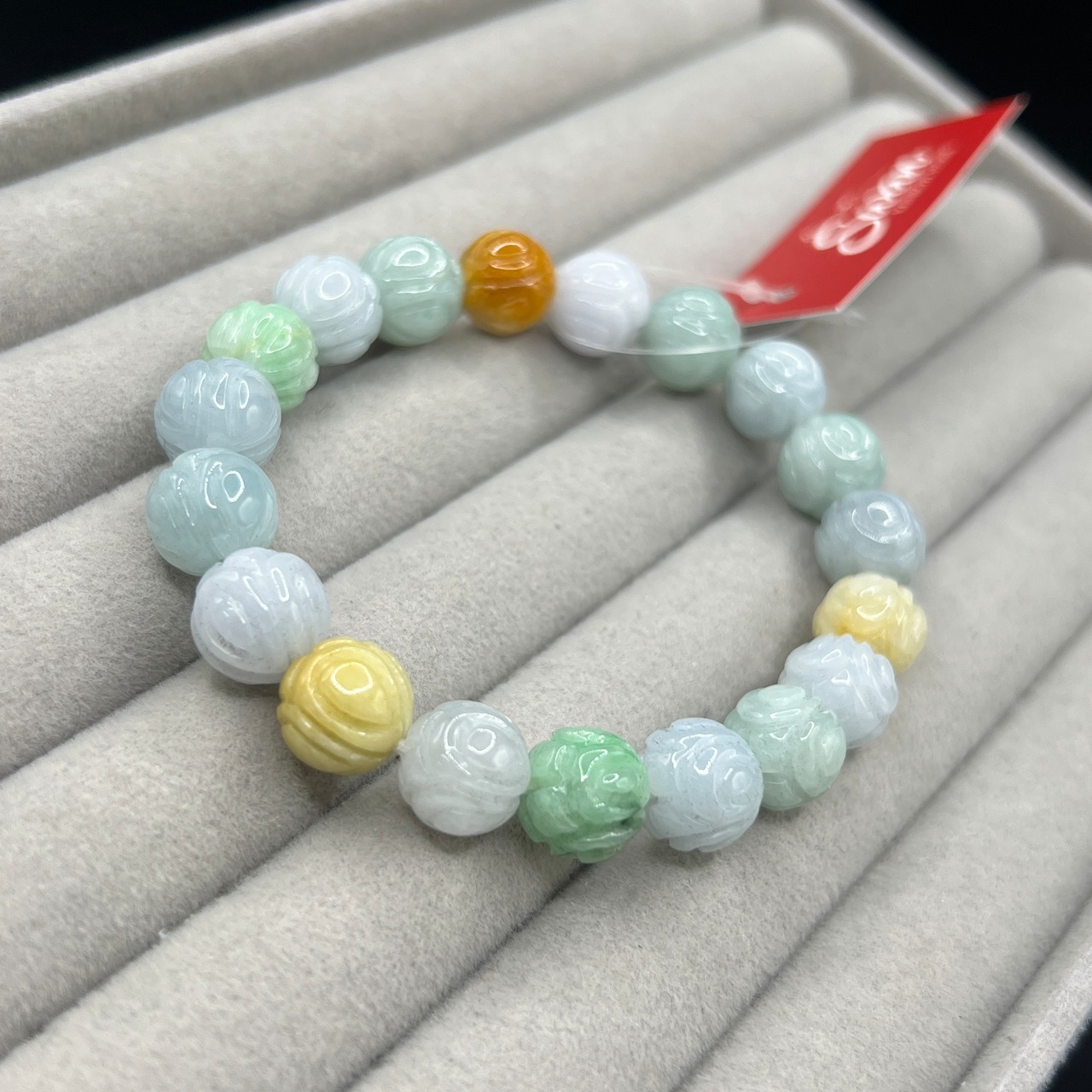 内径調整別途費用。カテゴリー➡︎内径調整 蓮の花の彫りの翡翠です☺︎ カラフルの色味で綺麗です♡ 10mm 16cm