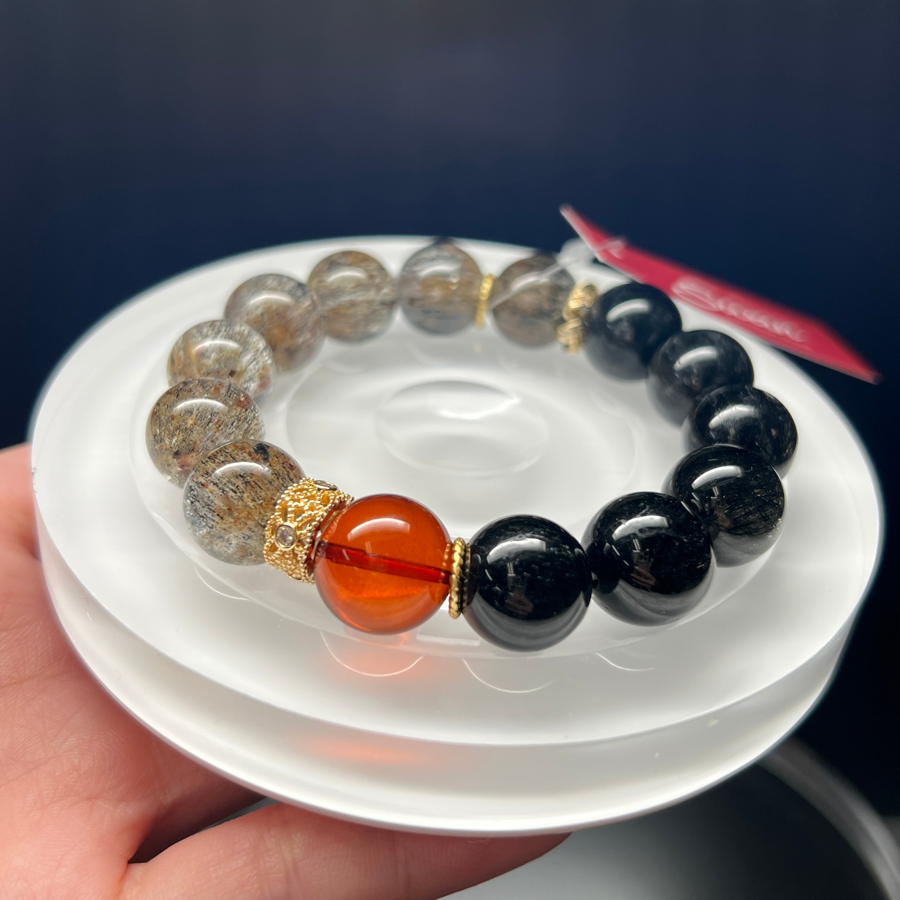 ブラックルチルとバイオタイトインクォーツのハーフデザイン