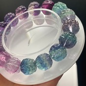 ルドラークシャ型フローライト 紫ブルーグラデーションです サイズ11.5ミリ 内径15.5センチ前後