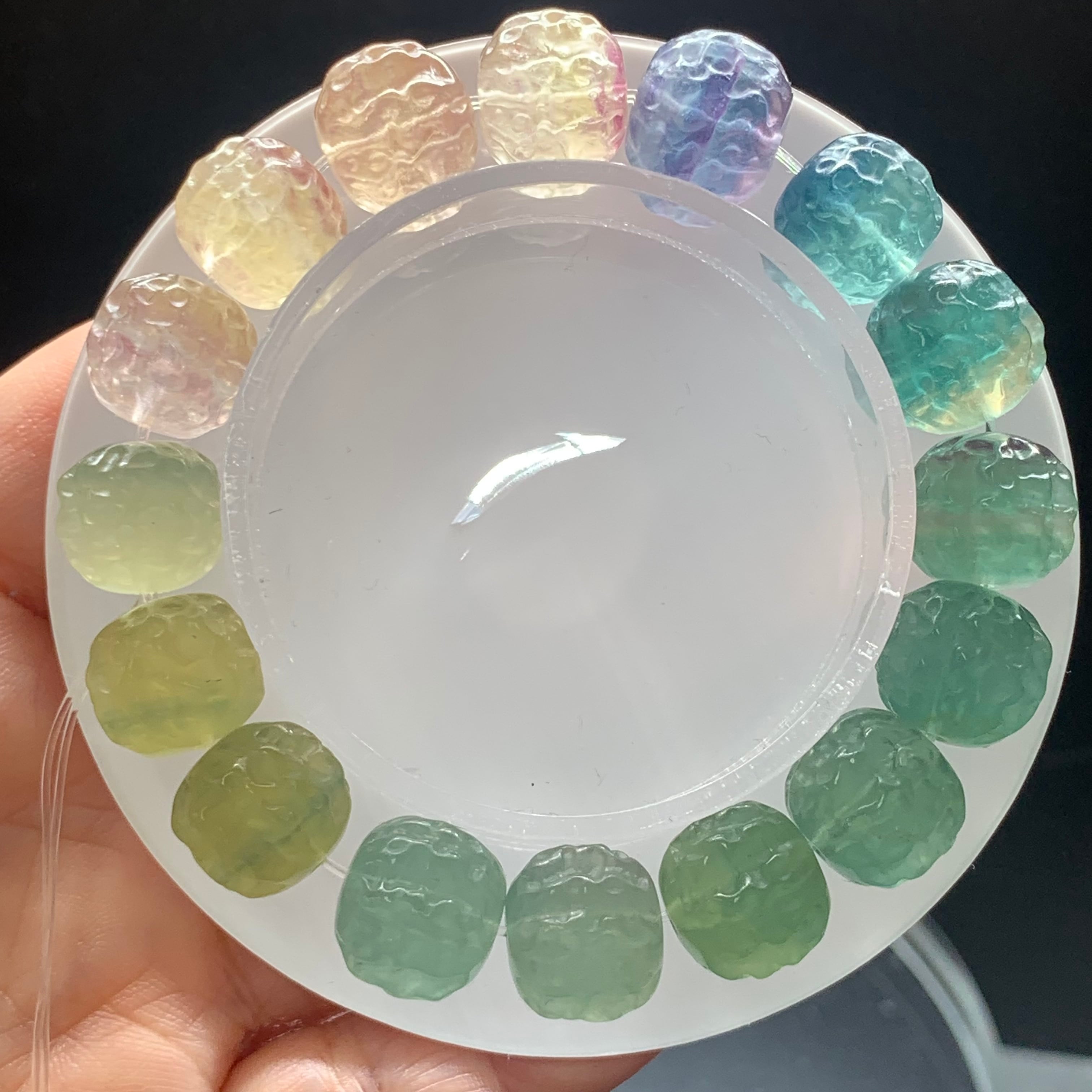 ルドラークシャ型 フローライト サイズ11.5ミリ 内径15.5センチ