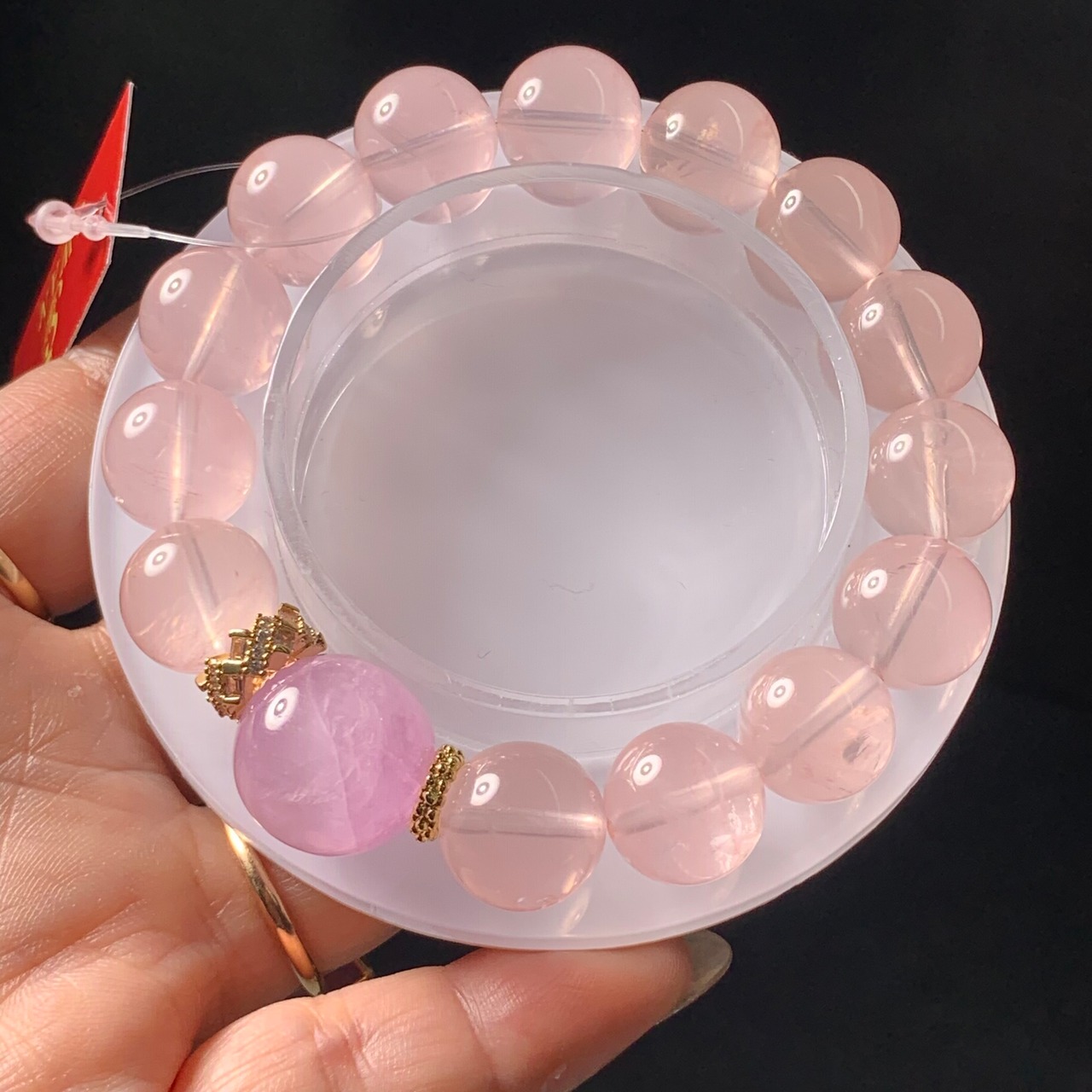 ピンククンツァイト15.8ミリ ローズクオーツ12.5ミリ前後 内径16.5センチ