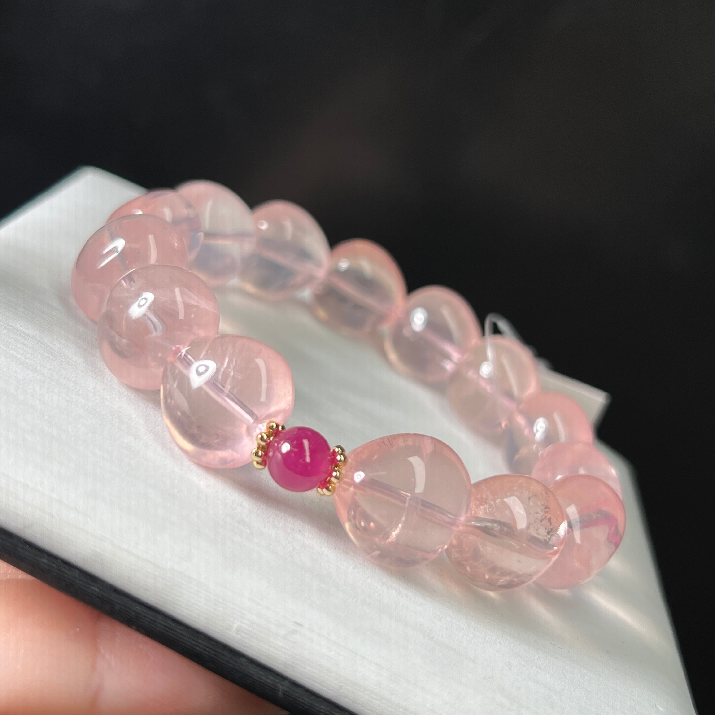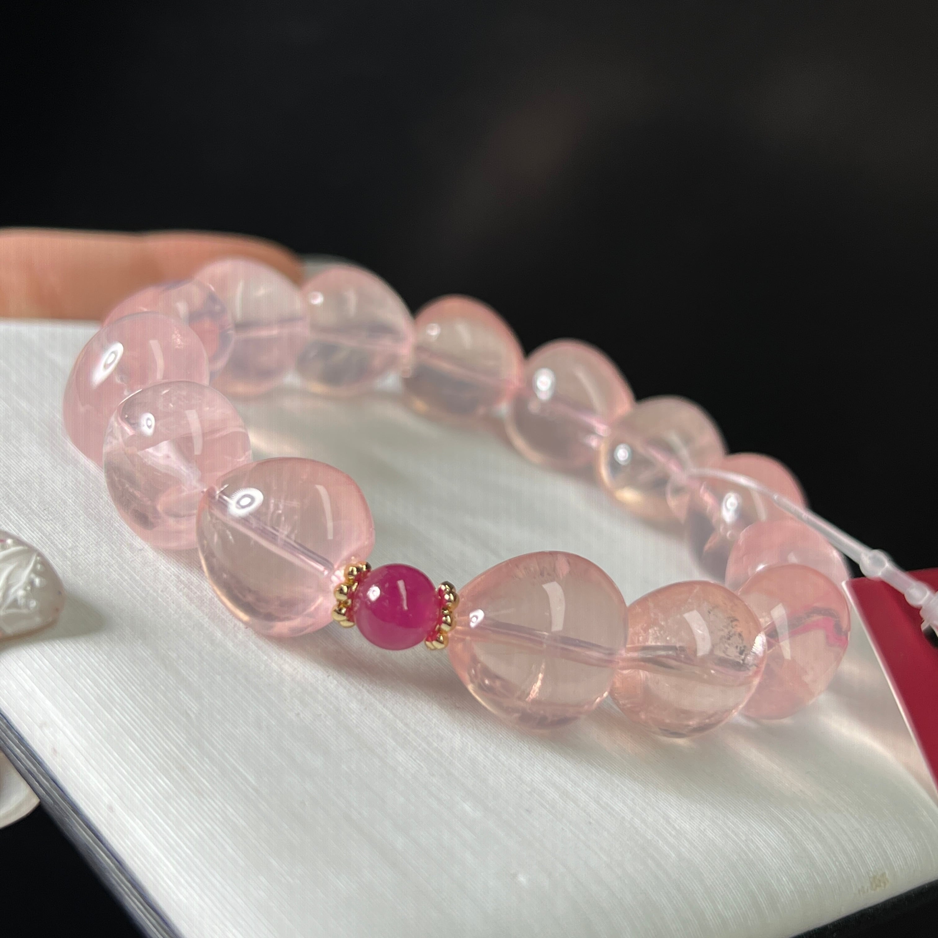 9月の誕生石ピンクサファイアを一粒をトップに入れたデザインブレスです♡