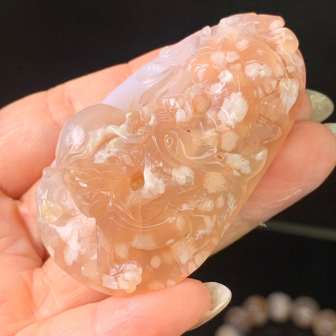桜瑪瑙ペンダント 龍彫り 62.5ミリ✖️37ミリ前後 上穴ありますので、ペンダントにできます