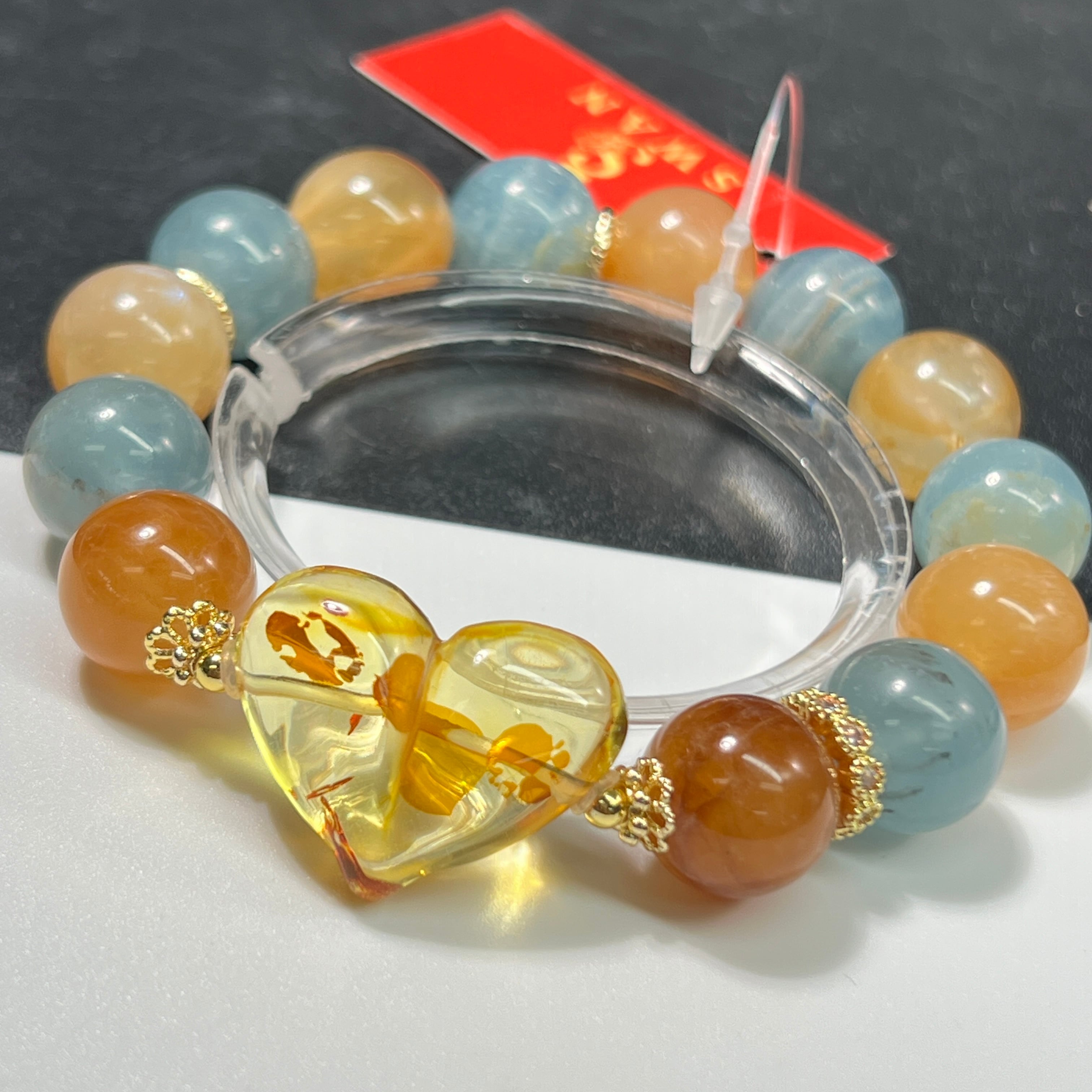 大ヒット商品の花アンバーの桃尻ハートを使用したデザインブレスレット✨