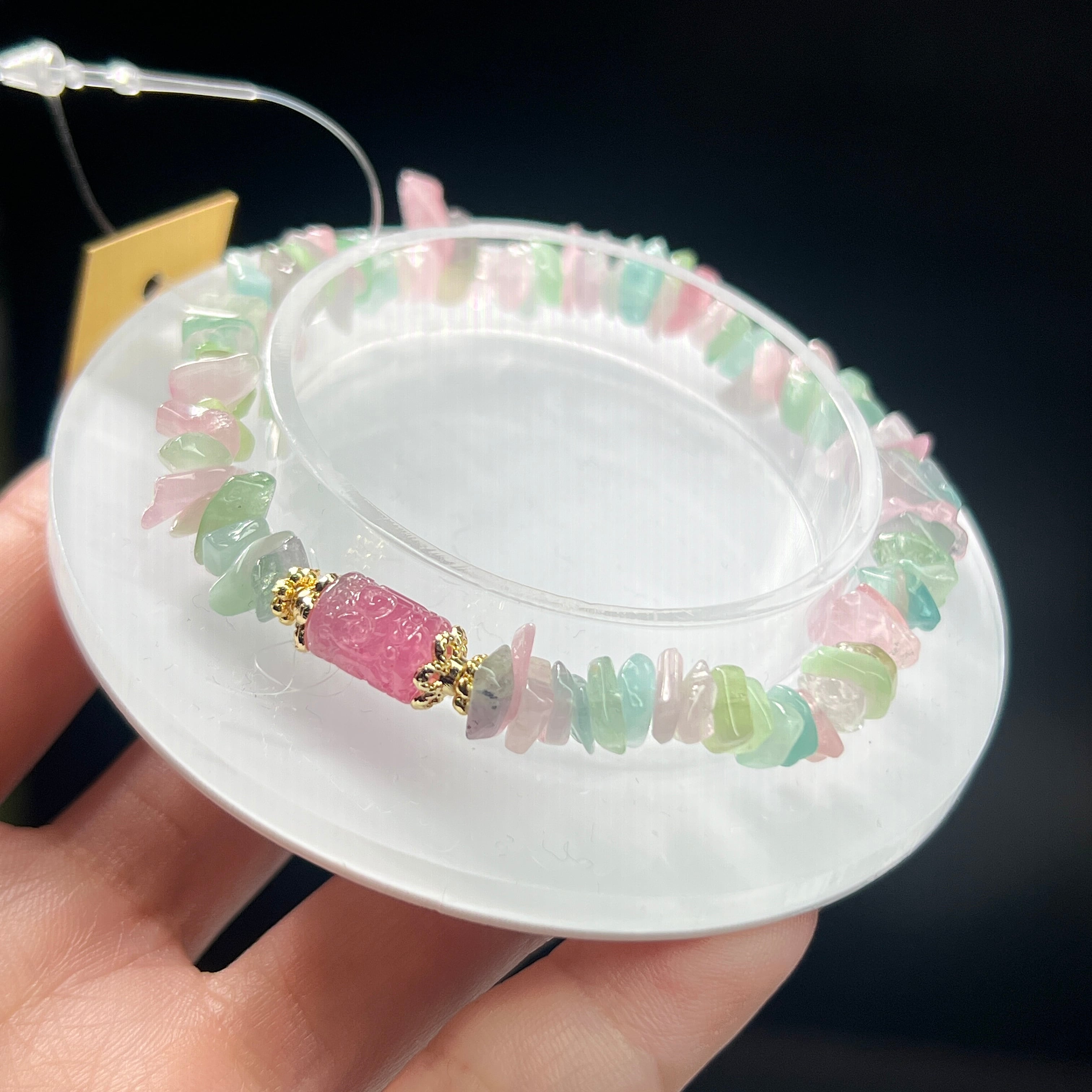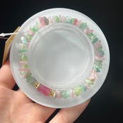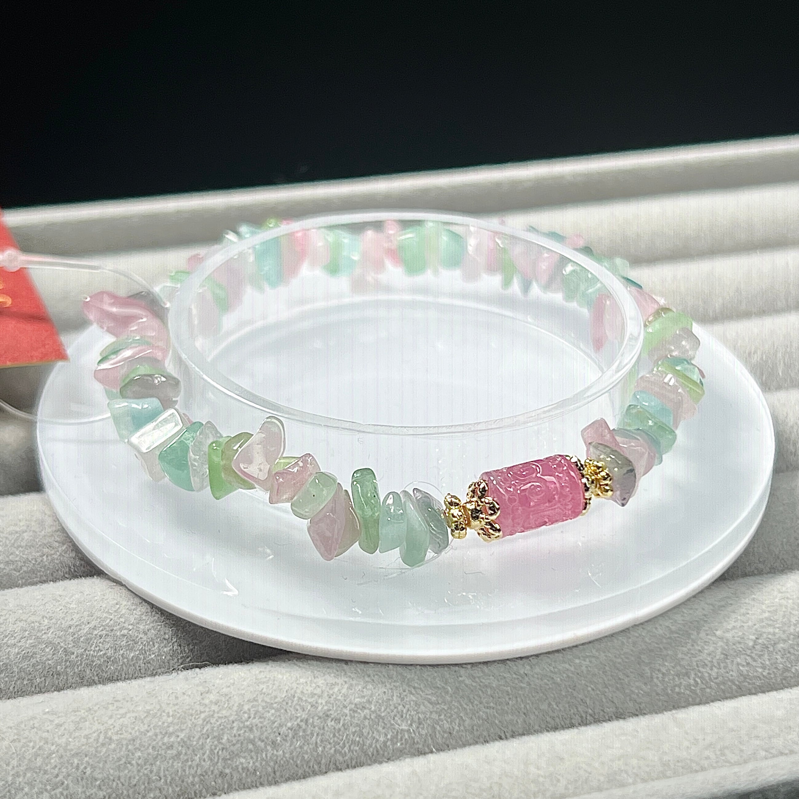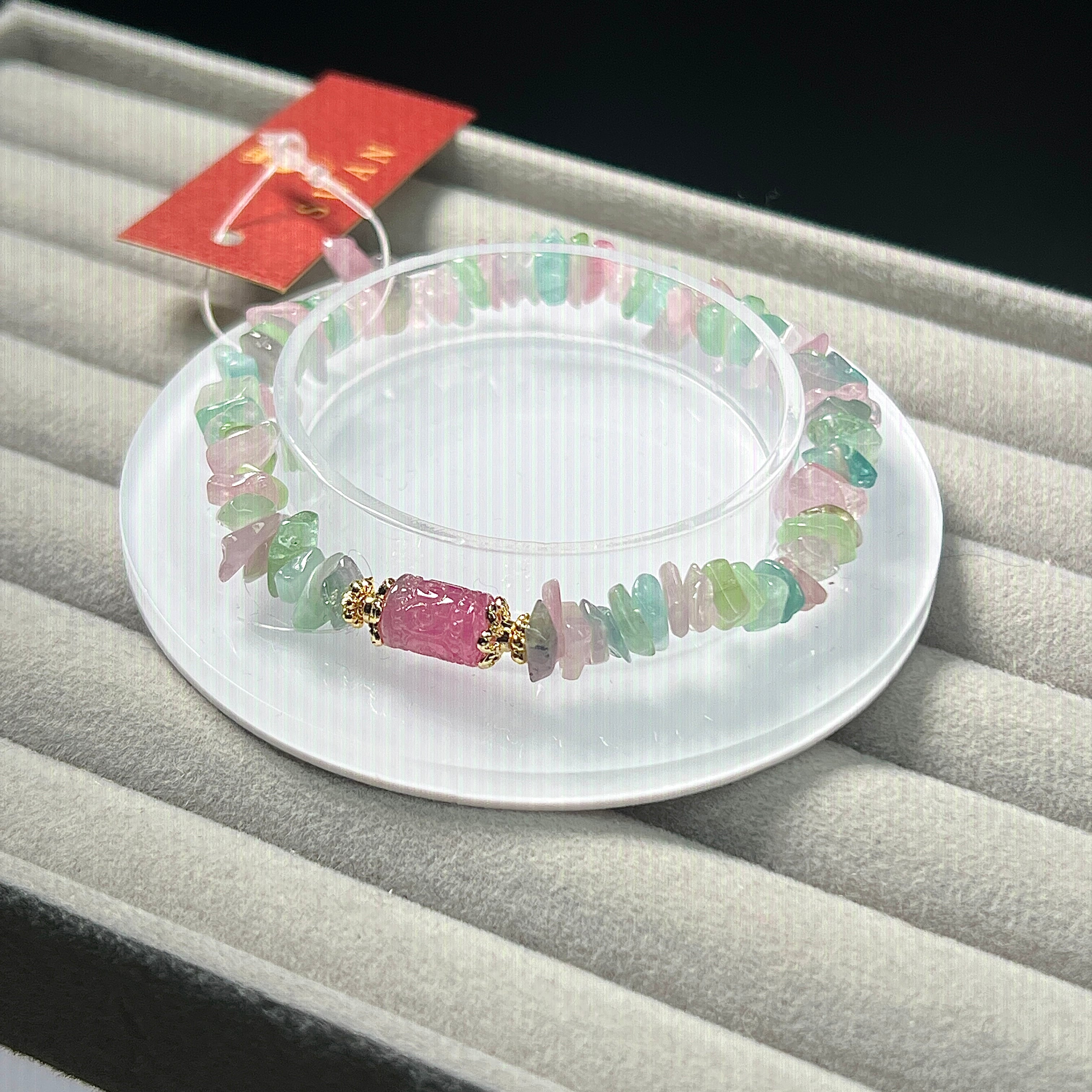 マニ車彫りのピンクトルマリンを入れたデザインブレスです❤️