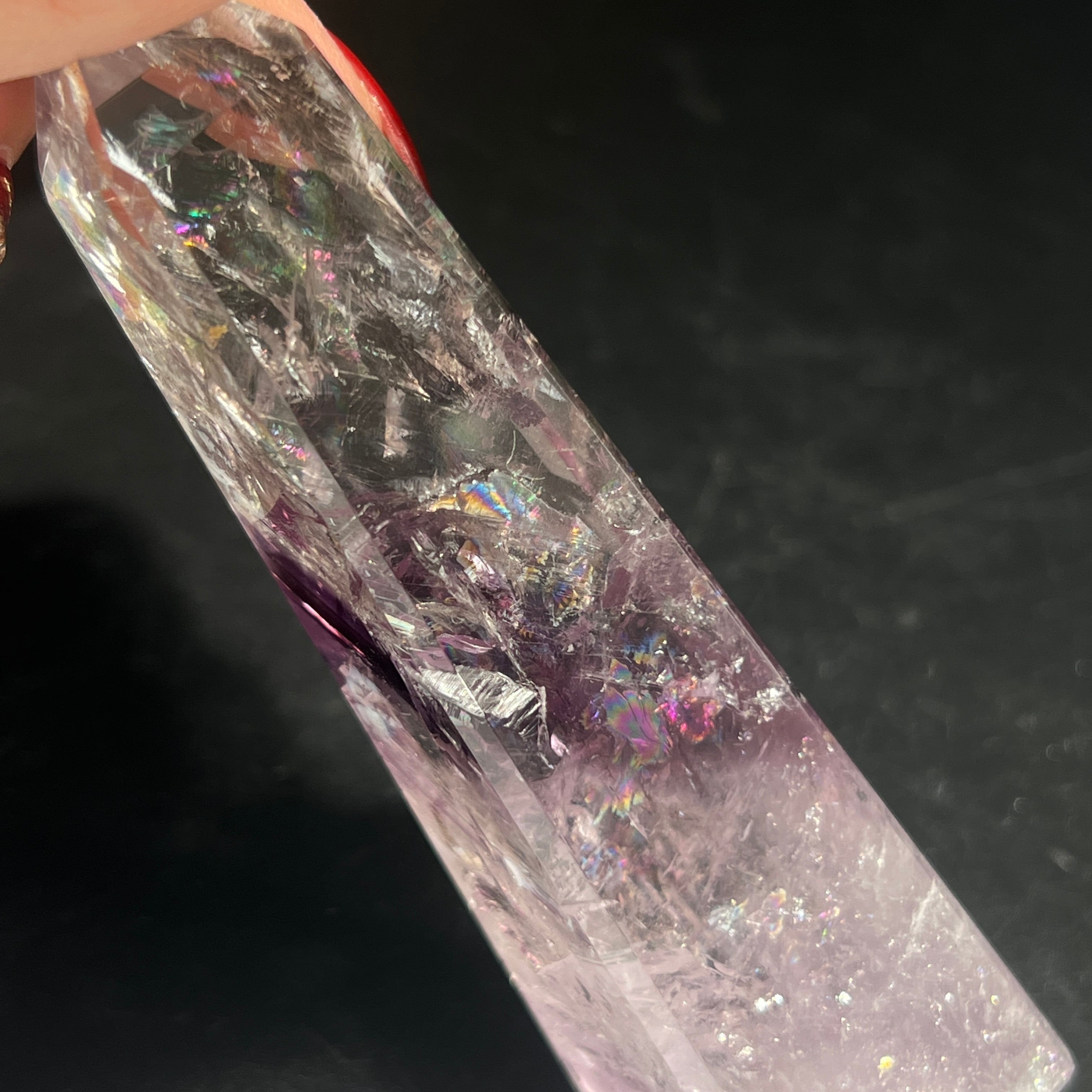 とっても美しいアメジスト、中はファントムになっておりちらちらと虹が輝きます。