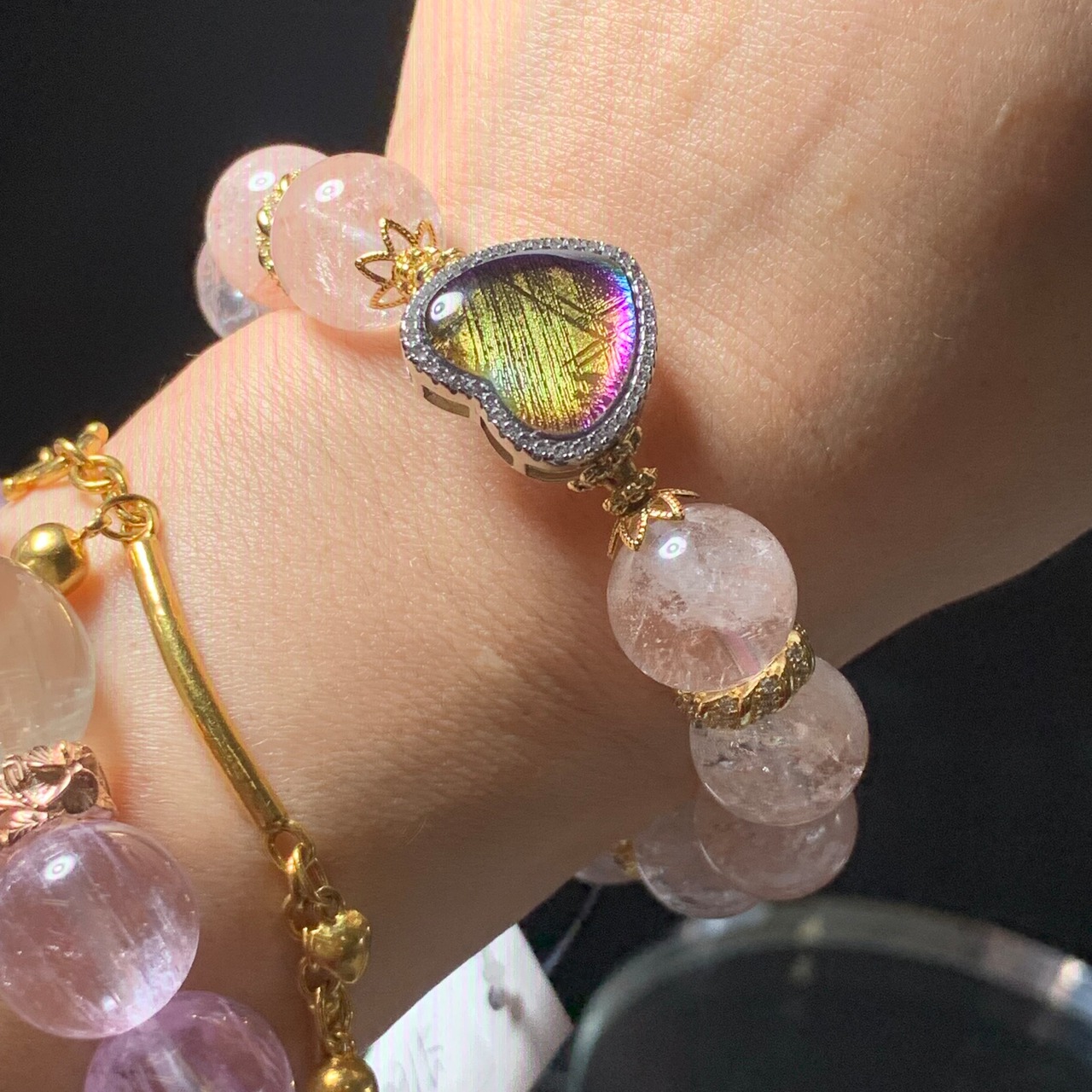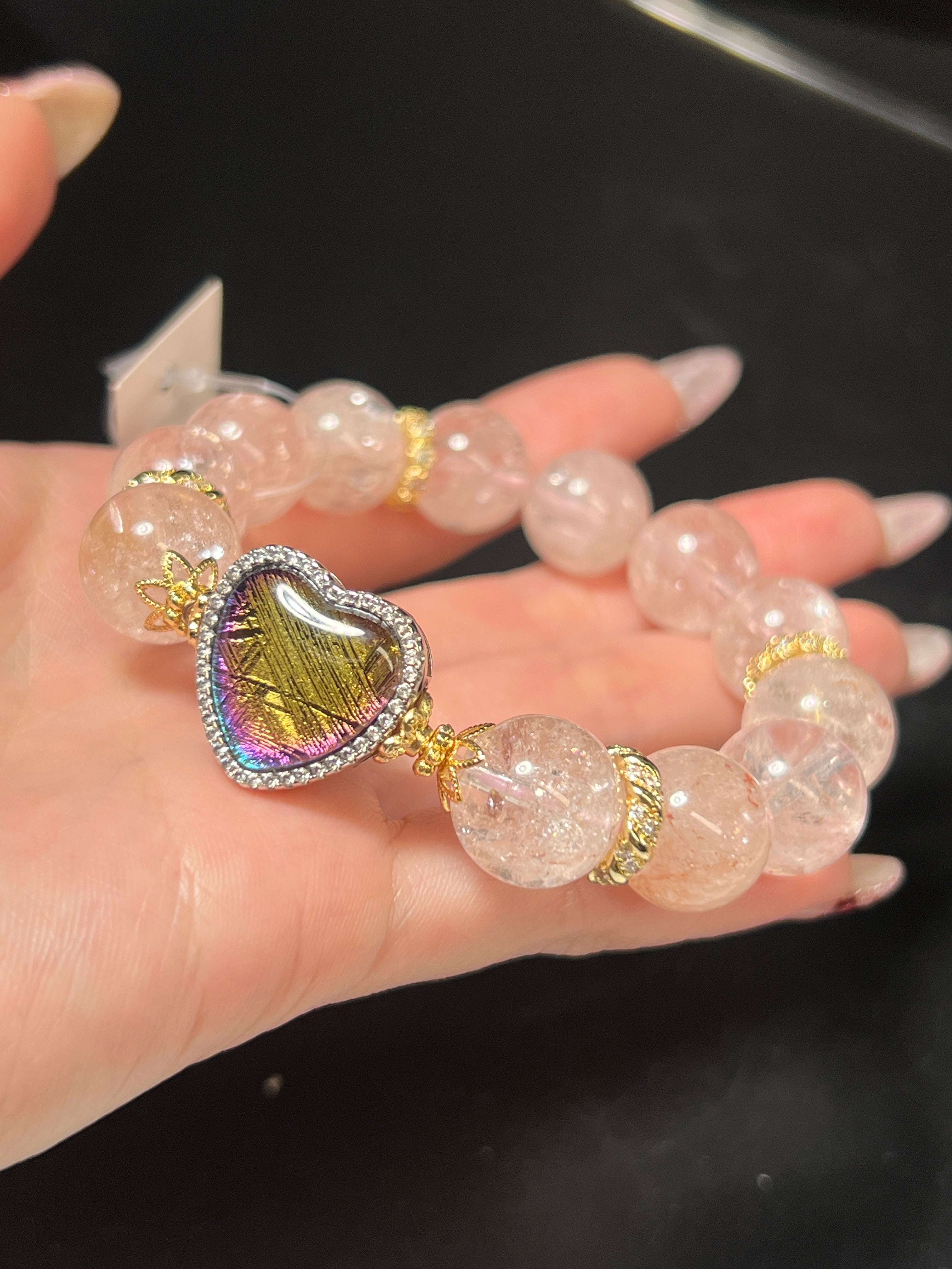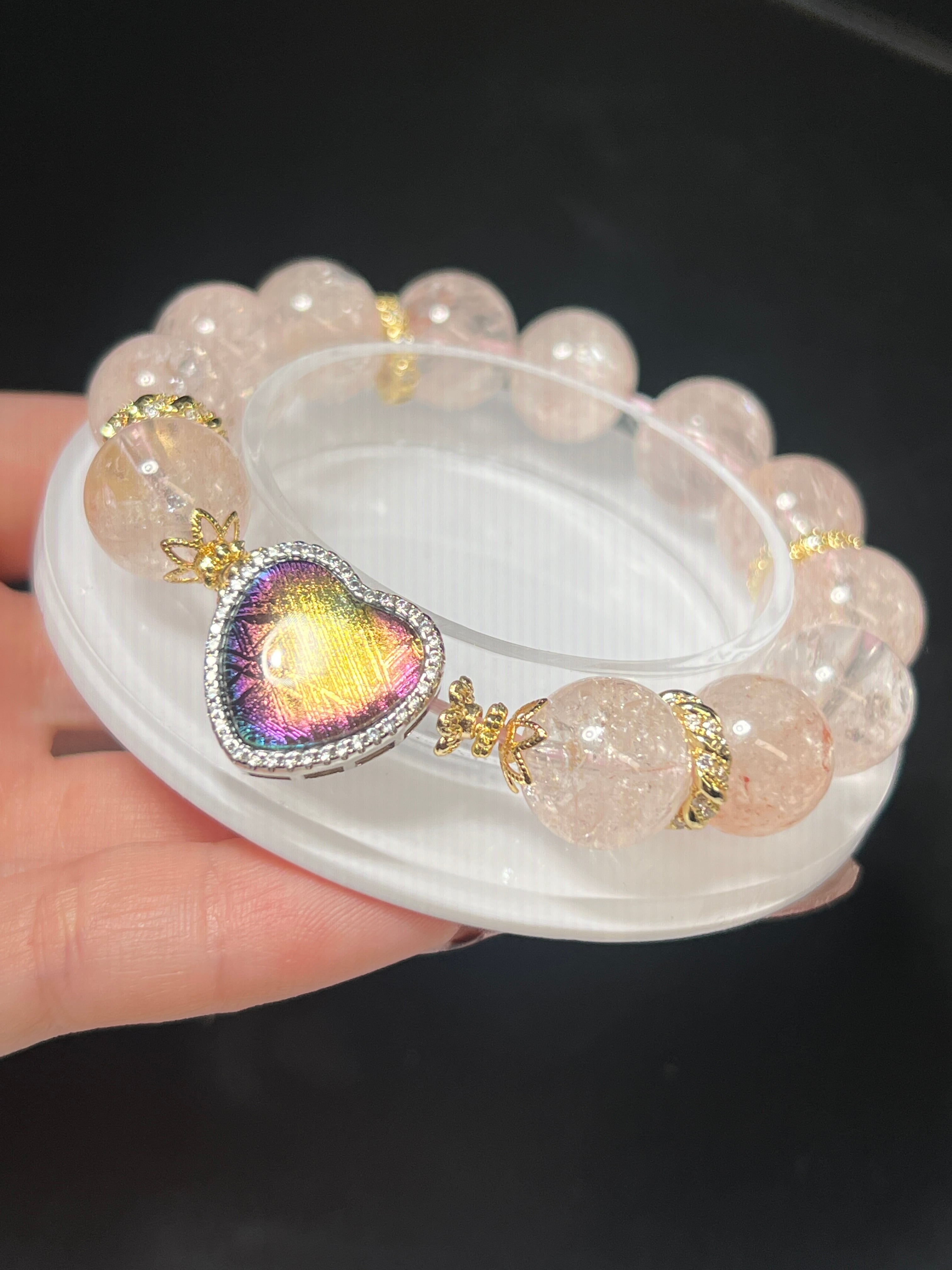 ギベオンハート17.7ミリ✖️18ミリ ピンククオーツ13ミリ前後 内径15.5センチ前後