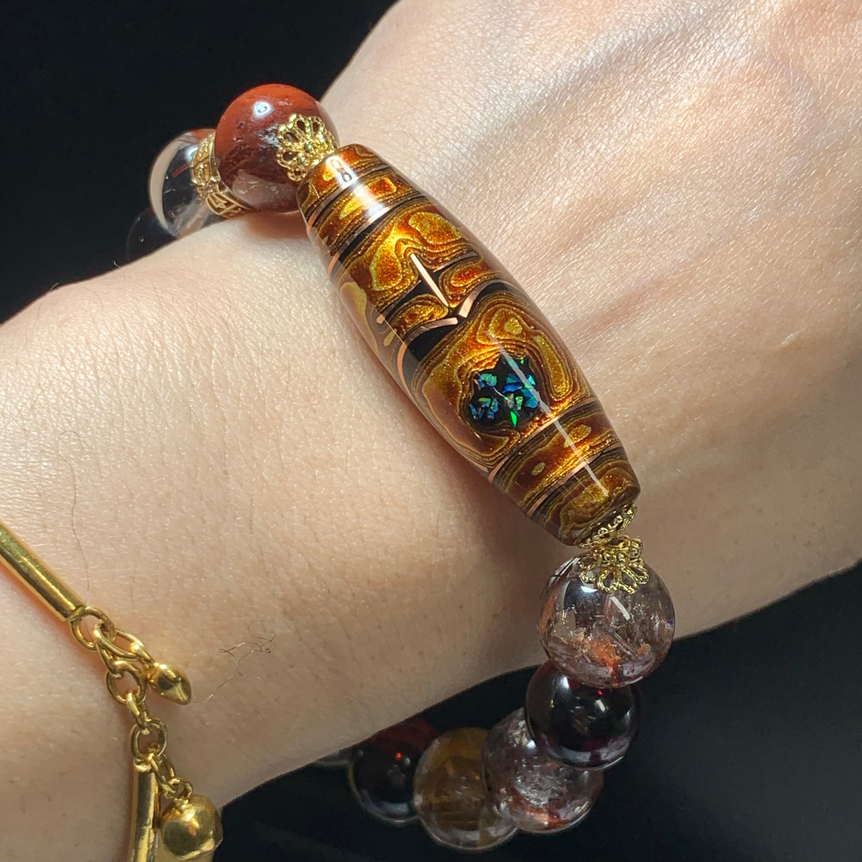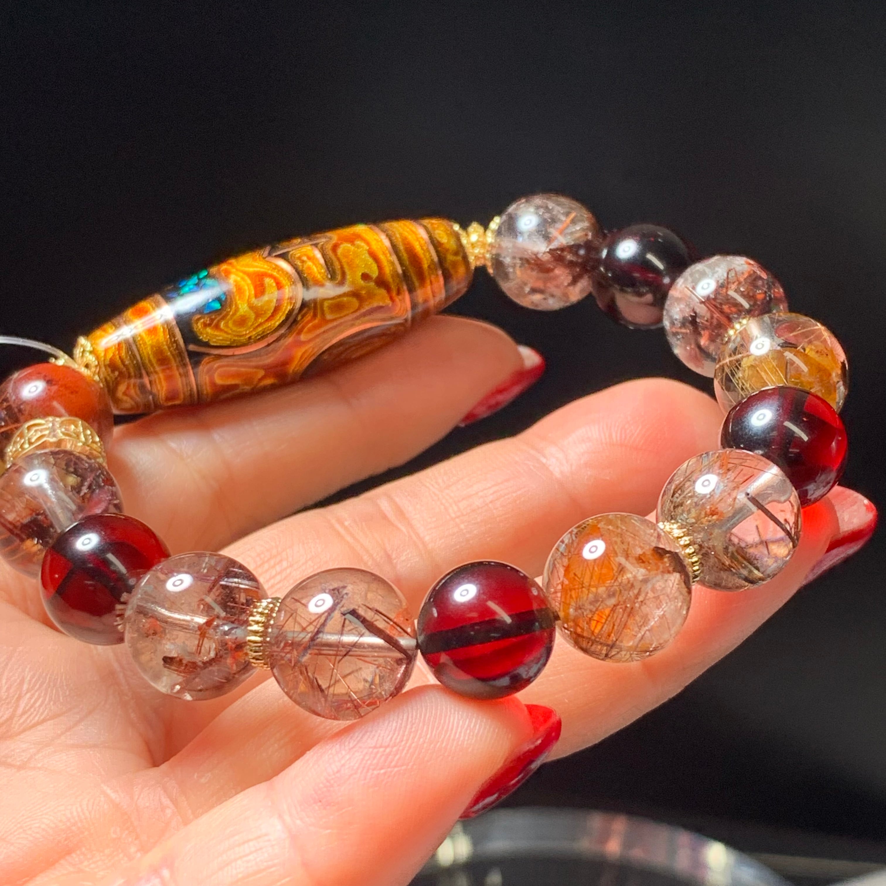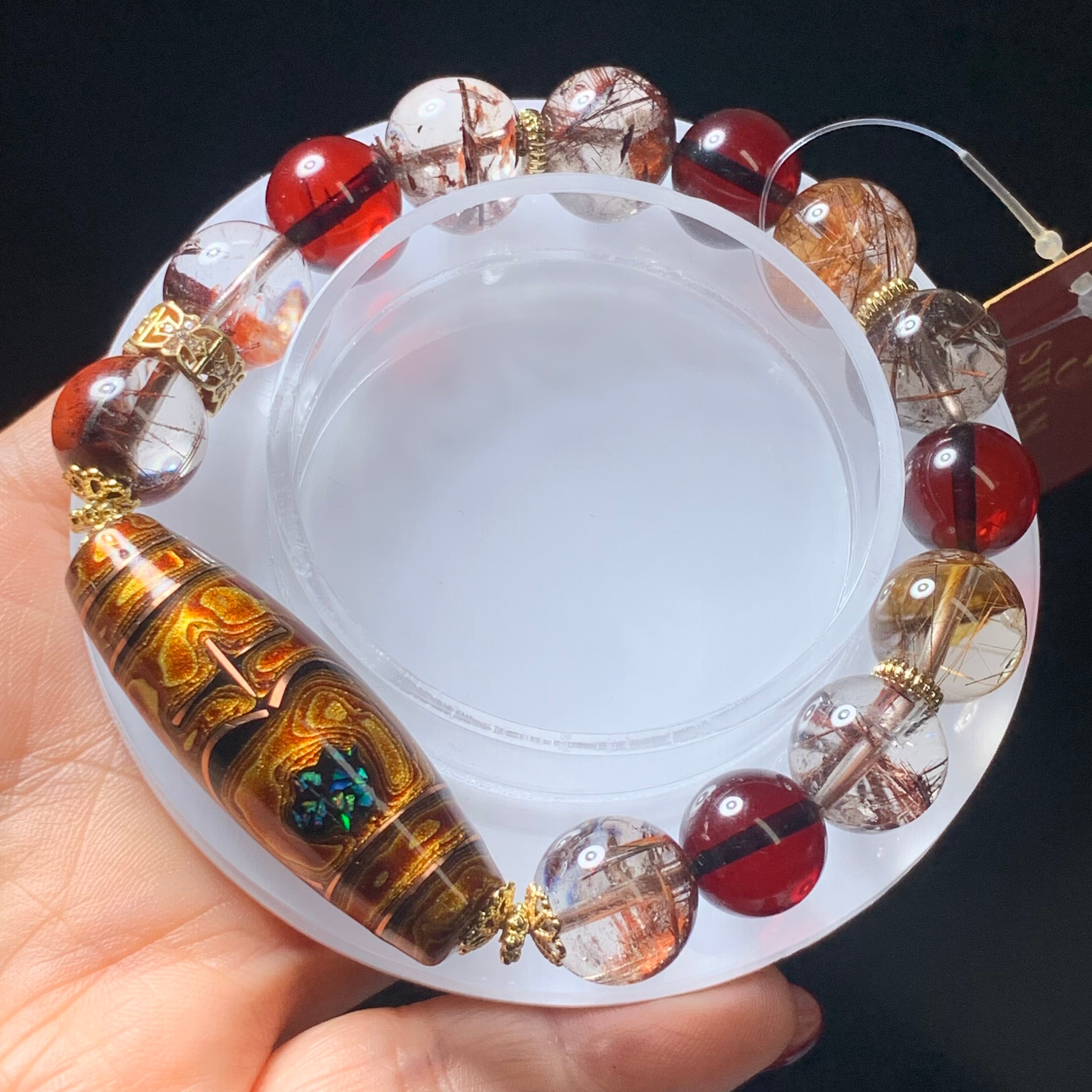 大人気な漆宝瓶天珠 レットルチル12ミリ レットアンバー11ミリ 内径16センチ