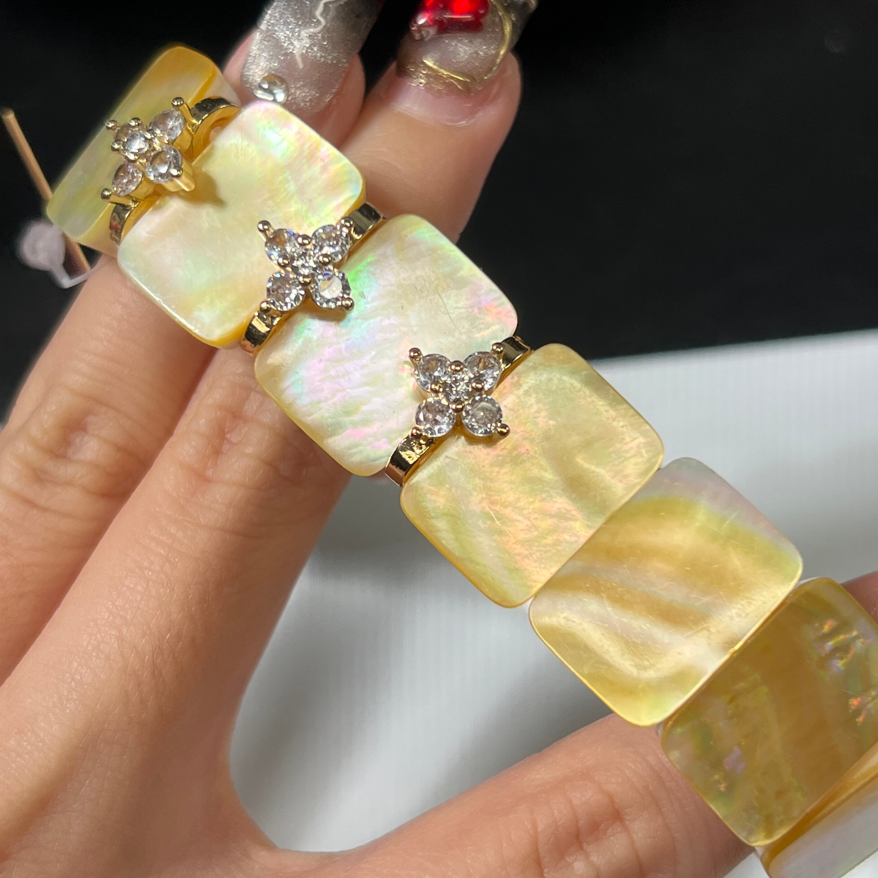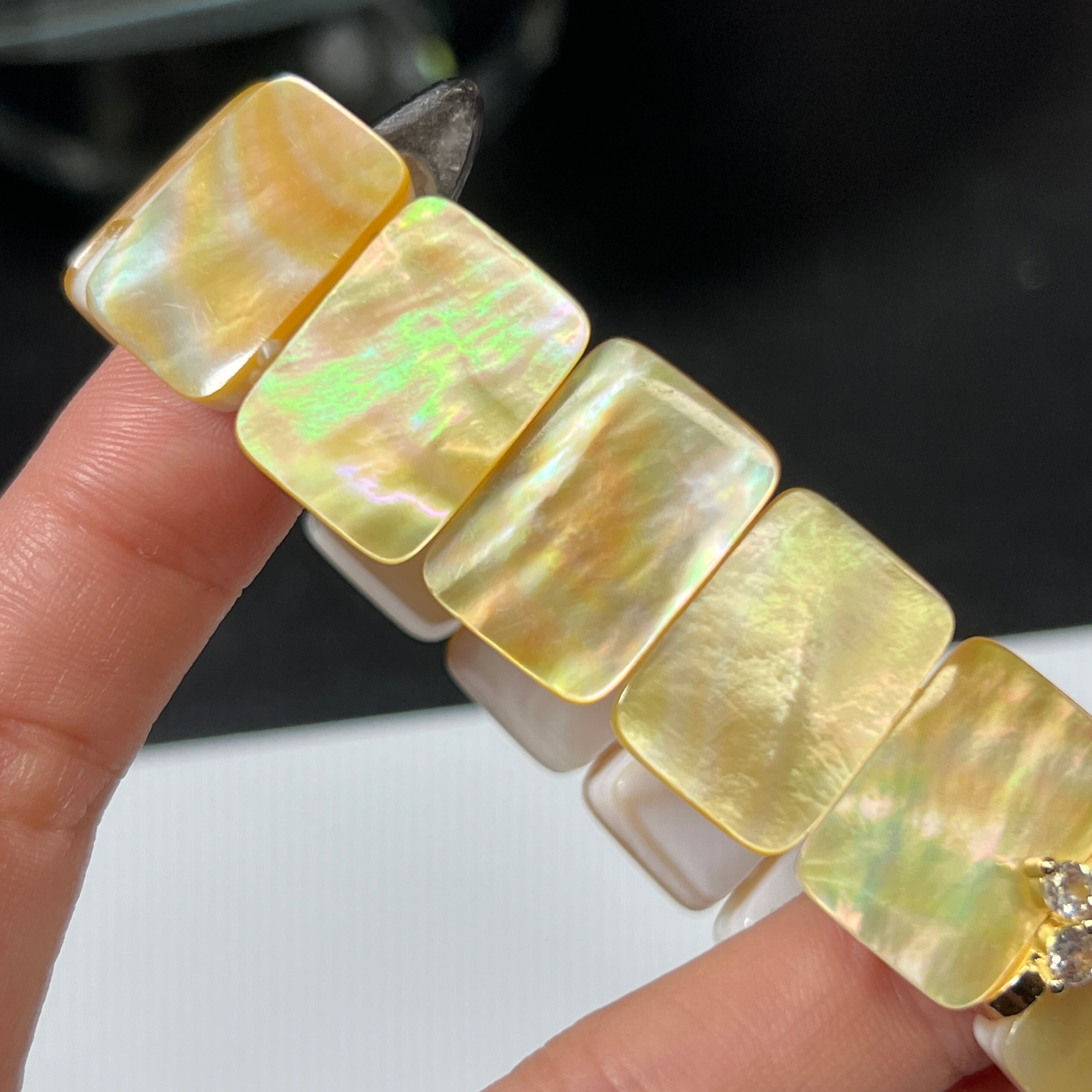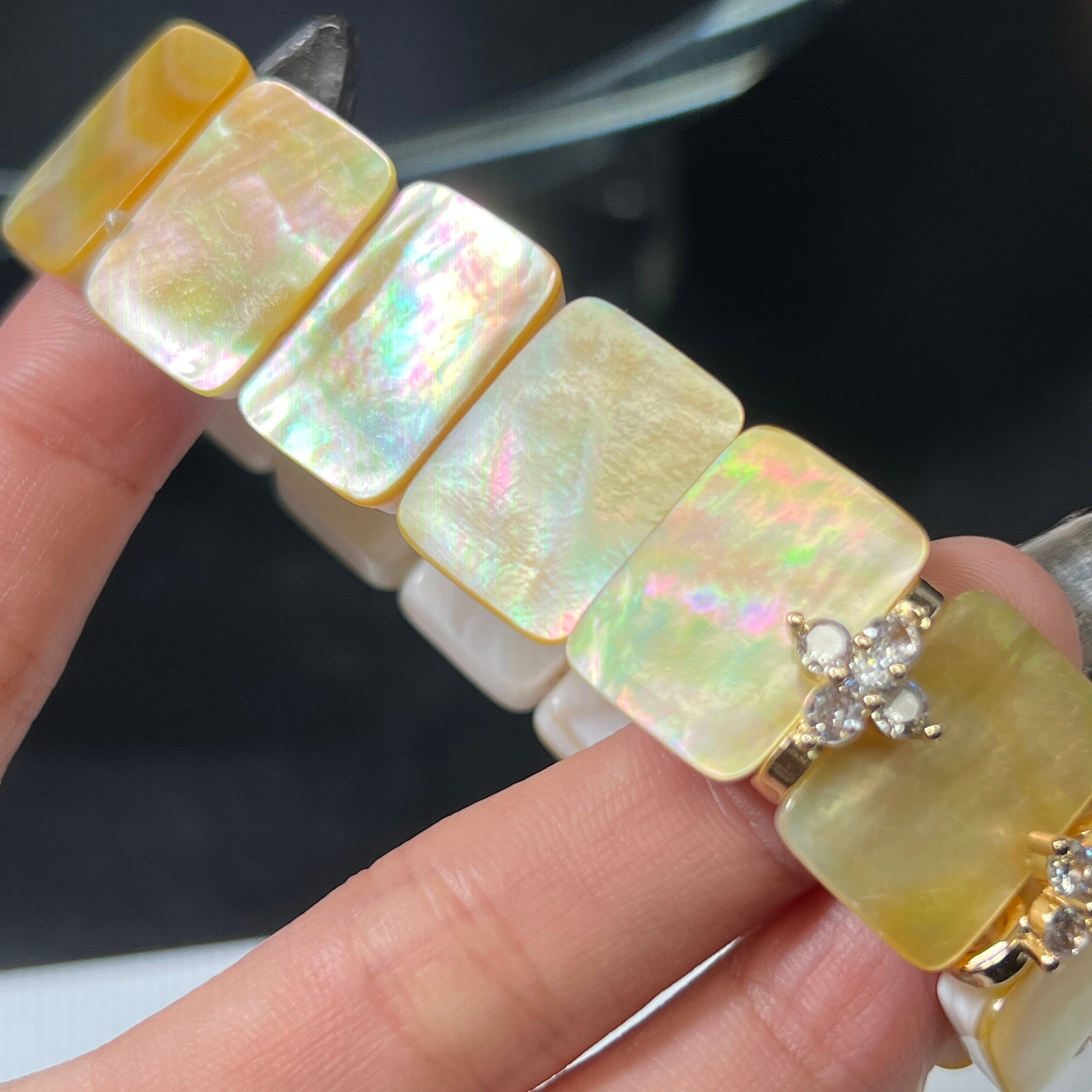 虹色に輝くシェルのバングルです。