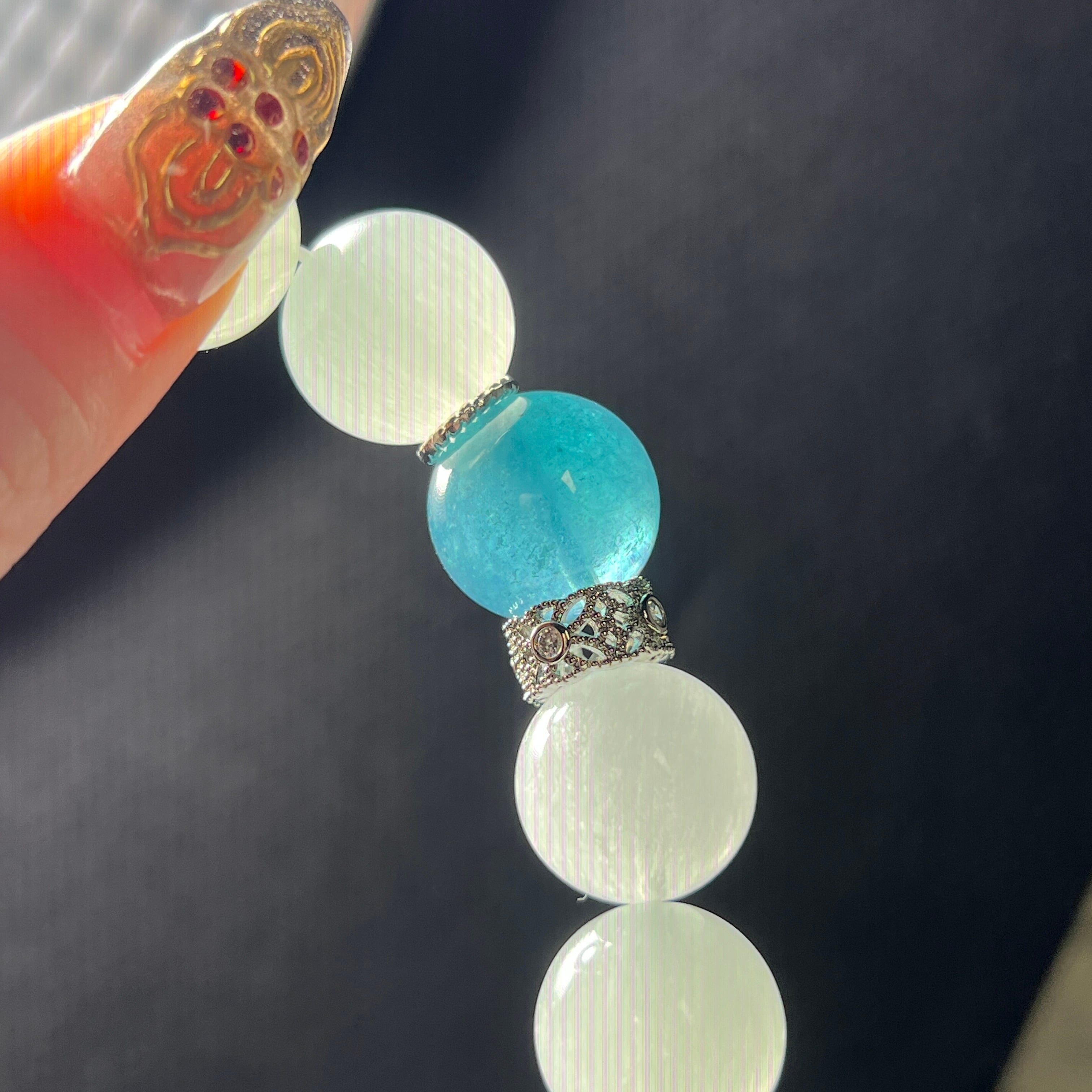 トップには濃い美しいアクアマリンと