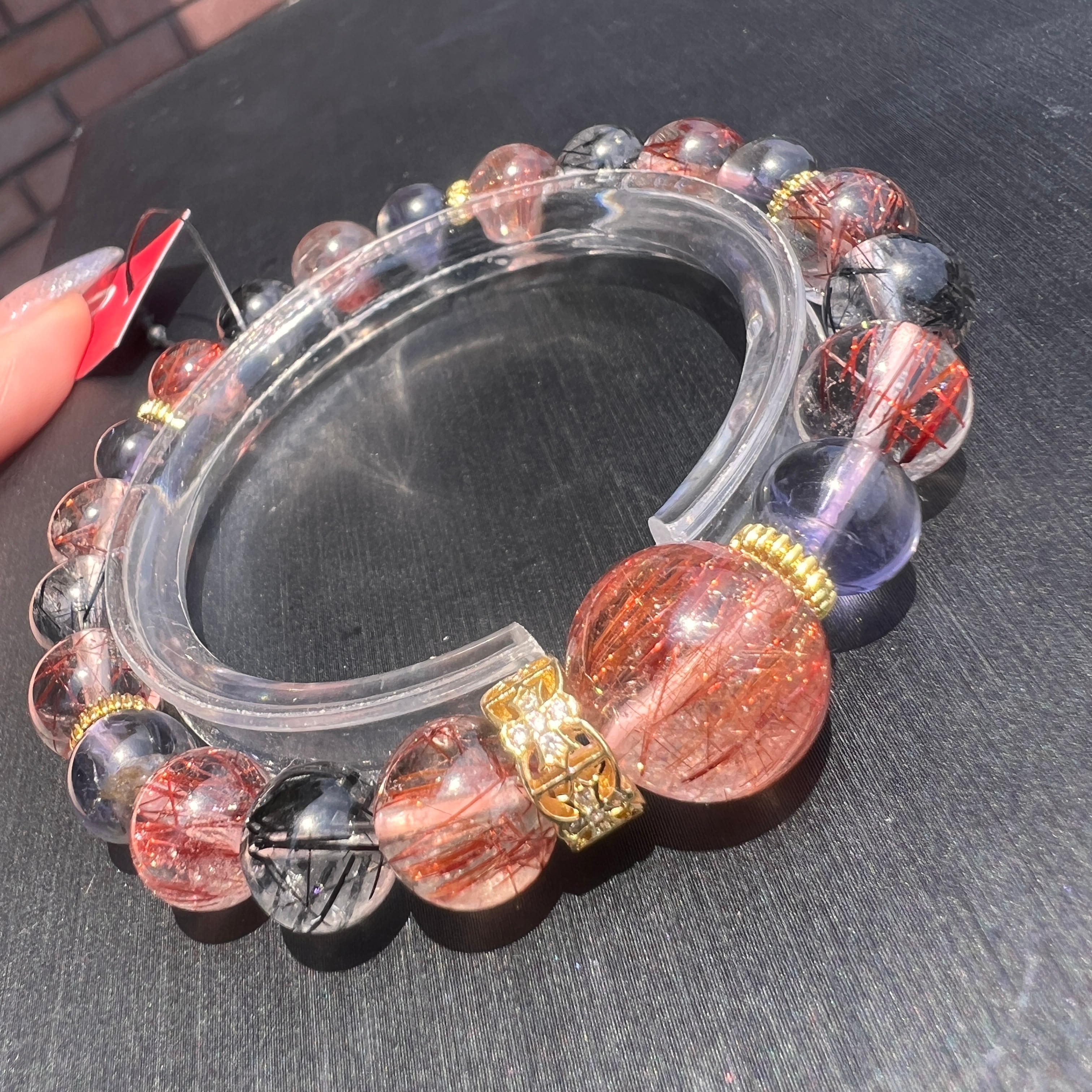赤と黒のルチルにアイオライトを使ったデザインブレスです✨✨